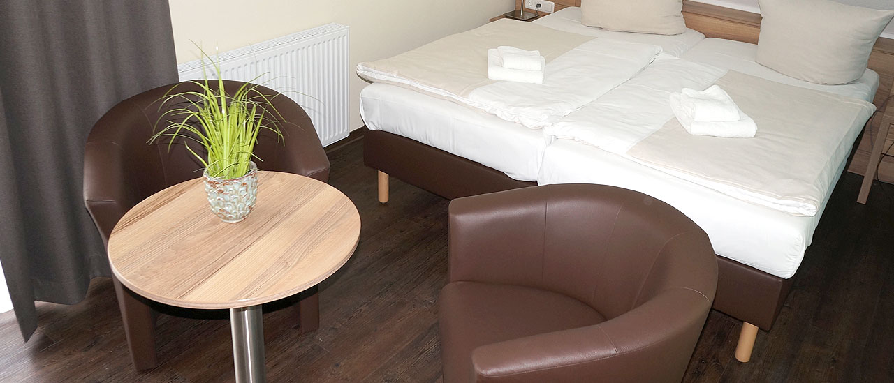 Unsere modernen Zimmer sind ausgestattet mit Dusche/Bad/WC, Fön, Sitzecke und Schreibtisch. Im ganzen Haus steht Ihnen WLAN 24 Stunden kostenfrei zur Verfügung.